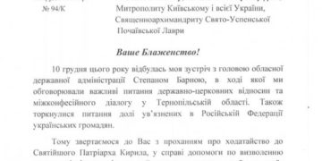 Обговоривши з губернатором питання державно-церковних відносин та міжконфесійного діалогу в Тернопільській області, а також питання долі ув’язнених в Російській Федерації українських моряків, Митрополит Володимир прийняв рішення слідом за Президентом Петром Порошенком звернутися Патріарха Кирила.