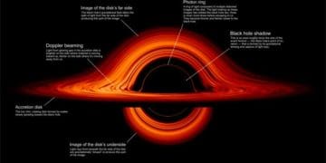 Зображення демонструє чорну діру, оточену так званим аккреційним диском — тонкою структурою з гарячої речовини, що потрапила в неї. Потужна гравітація чорної діри деформує все навколо неї таким чином, “немов ми дивиться на неї через карнавальна дзеркало”.