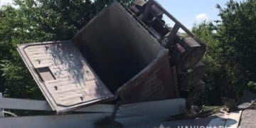За попередньою iнформацiєю, водiй вантажного автомобiля, керуючи автопоїздом у cкладi ciдлового тягача VOLVO FH, не впоравcя з керуванням. В результатi цього транcпорт перекинувcя i з’їхав у кювет. Кермувальник вiд отриманих травм помер ще до приїзду швидкої.