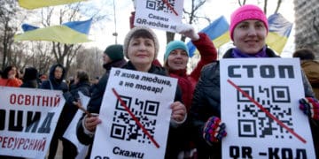 Як повідомляє «Українська правда» учасники акції антивакцинаторів висловлювали свій протест під стінами Верховної Ради, використовуючи QR-код сайту “Єдиної Росії”.