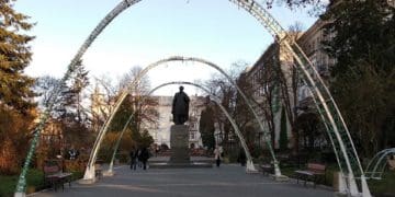 Світлодіодна арка з вулиці Сагайдачного змінила свої місце розташування, її перенесли у сквер на вул. Чорновола неподалік пам’ятника Пушкіну.