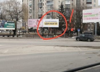 Славнозвісна фраза про "рускій корабль" з'явилася на рекламних щитах міста. Культовий вираз, сказаний українським прикордонником під час оборони...