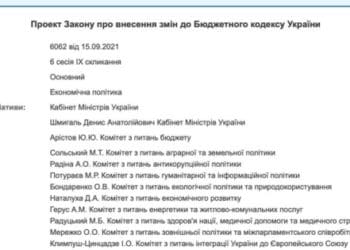 15 вересня 2021 року Уряд разом із проектом Держбюджету на 2022 рік (№6000) подав зміни до Бюджетного кодексу (№ 6062)....