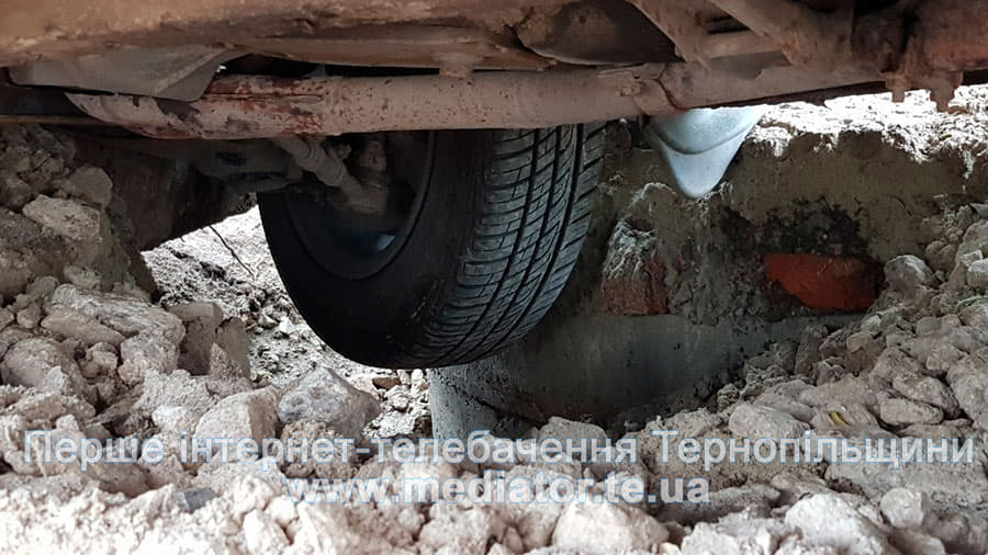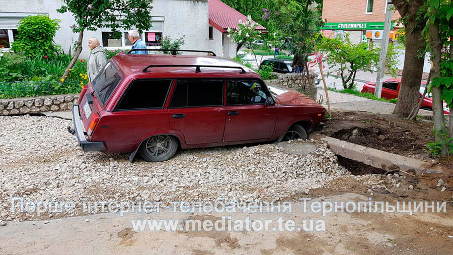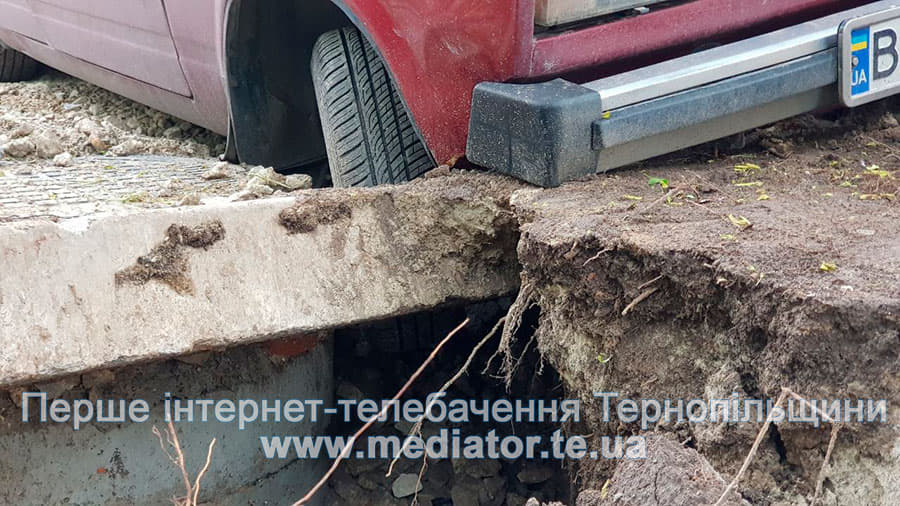 Земля осунулась саме під колесами автомобіля ВАЗ. Авто застрягло в землі, пошкоджені «фаркоп» та крило, пише “За Збручем” із посиланням на “МедіаТор”.