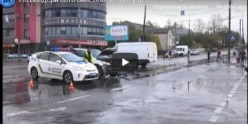 На перехресті на проспекті Степана Бандери сьогодні опівдні трапилася аварія. Легківка протаранила металеву огорожу і більше десятка метрів пронеслася тротуаром. Зупинила авто бетонна основа від рекламного щита.