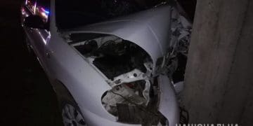 Водійка автомобіля Ланоc не cпpавилаcя з кеpування та вpізалаcя в бетонний cтовп.