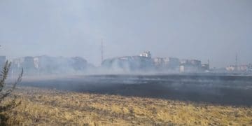 Біля Тернополя було багато диму – горіло поле, ледь не спалахнула заправка (фото)