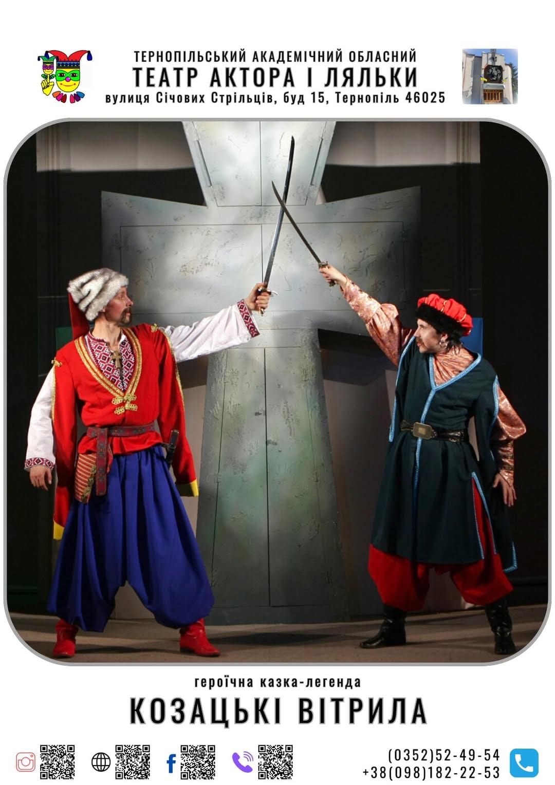 Цієї неділі, 22 лютого, юних тернополян та їхніх батьків запрошують поринути у світ відважних воїнів та давніх переказів. На сцені Тернопільського академічного обласного театру актора і ляльки покажуть виставу-легенду «Козацькі вітрила».