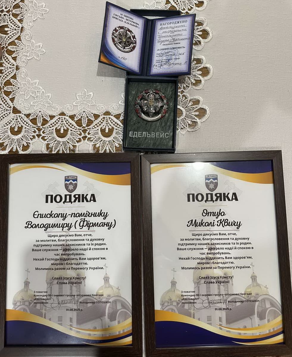 Крім митрополита, військові відзначили ще двох служителів. Грамоти-подяки отримали єпископ-помічник Володимир Фірман та отець Микола Квич. Обоє священнослужителів постійно здійснюють духовні місії серед військових.