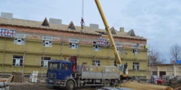 Як повідомив технічний директор підрядної організації Іван Повшок будівлі уже зведено і зараз відбувається утеплення даху.