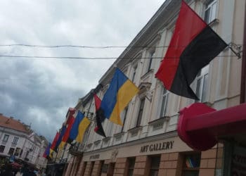 Будинки на центральних вулицях Тернополя прикрасили великими синьо-жовтими та червоно-чорними стягами. Національними прапорами замайоріли фасади на вулицях Руській, Митрополита...