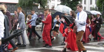 Так, цього разу під час Параду випускників хлопці вражали не менше за дівчат. Дехто надав перевагу класиці – синьому або сірому костюму-трійці чи піджаку у клітинку, а дехто прийшов у джинсах, білій сорочці та піджаку. Було багато костюмів бежевих, рожевих, червоних кольорів та їх відтінків.
