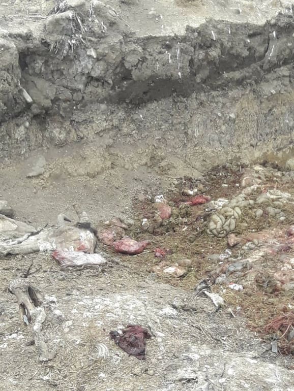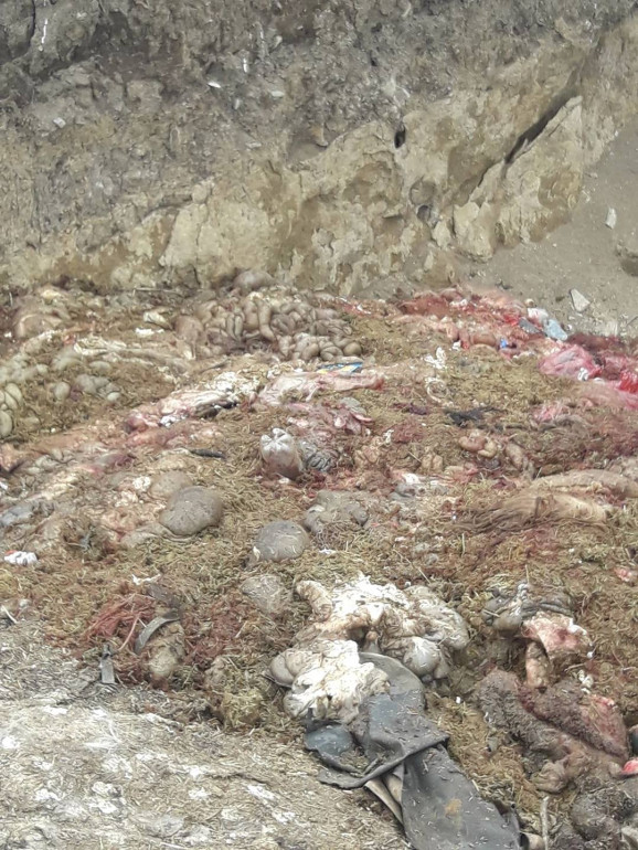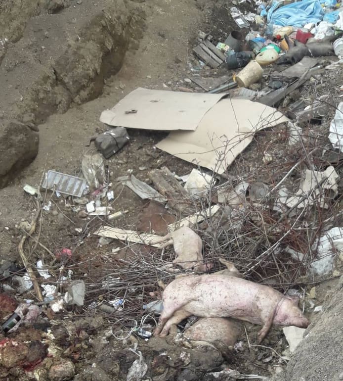 Трупи тварин, нутрощі та шкури викидають, швидше за все, власники місцевої ферми, на якій відгодовують свиней, та бійні, яка розташована неподалік. На фото добре видно не тільки рештки різних тварин та нещодавно викинуті трупи свиней, а й давно почорнілі туші, які тривалий час розкладаються під сонцем та гниють.