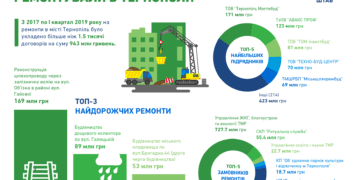 Під час презентації експерти Антикорупційного штабу повідомили, що у Тернополі за останні два роки було укладено понад 1.5 тисячі договорів на проведення ремонтних робіт і витрачено близько 943 млн гривень.