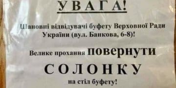 «Шановні відвідувачі буфету Верховної Ради України. Велике прохання ПОВЕРНУТИ СОЛОНКУ на стіл буфету!»