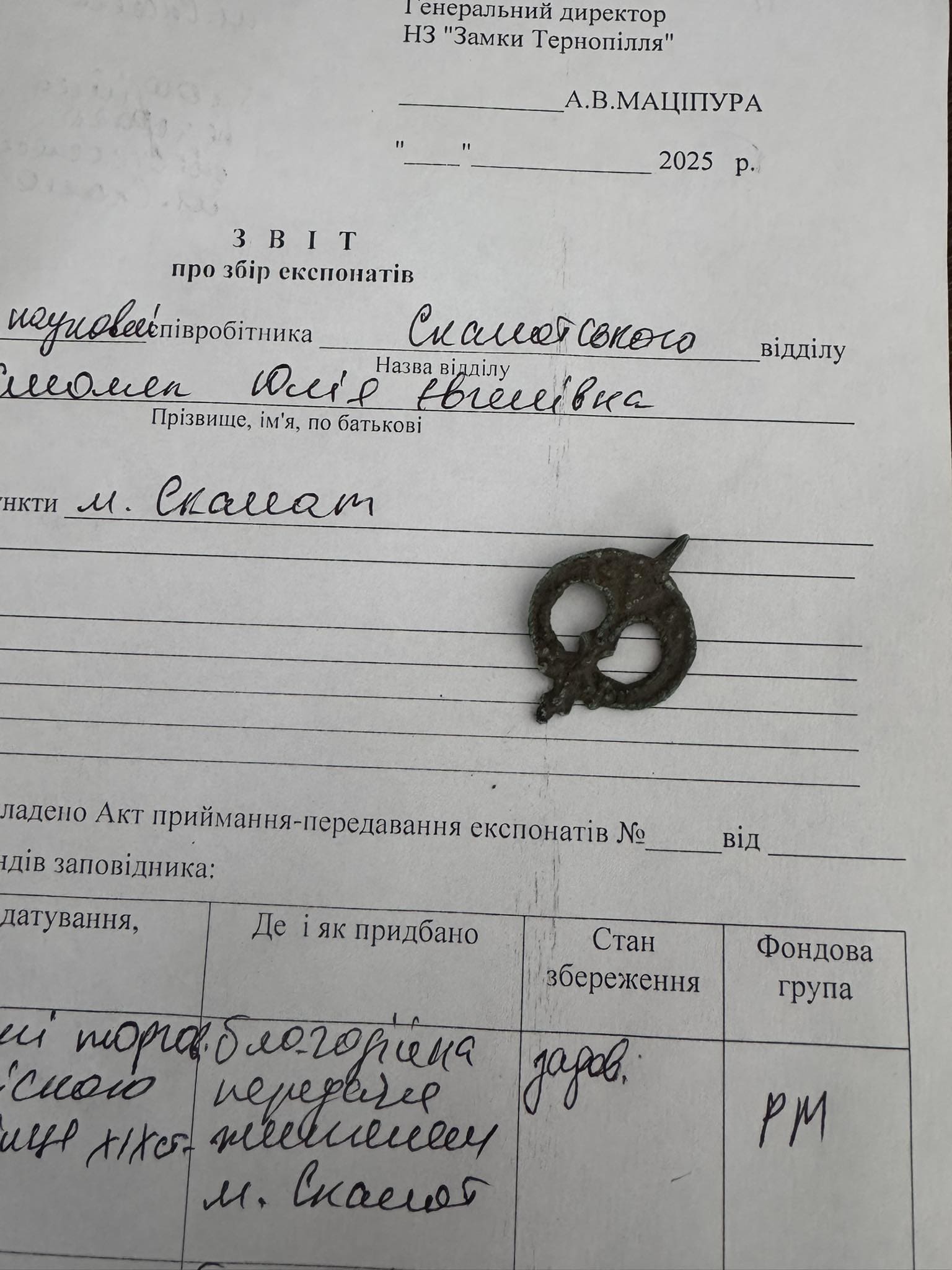 Окрім книжкових пам’яток, фонди замку поповнилися археологічними предметами. Серед них – лунниця часів Київської Русі. Це давня жіноча прикраса-оберіг, яка символізувала родючість, захист і зв’язок людини з природою та небесними світами. За інформацією замку, цю знахідку виявили на городі.