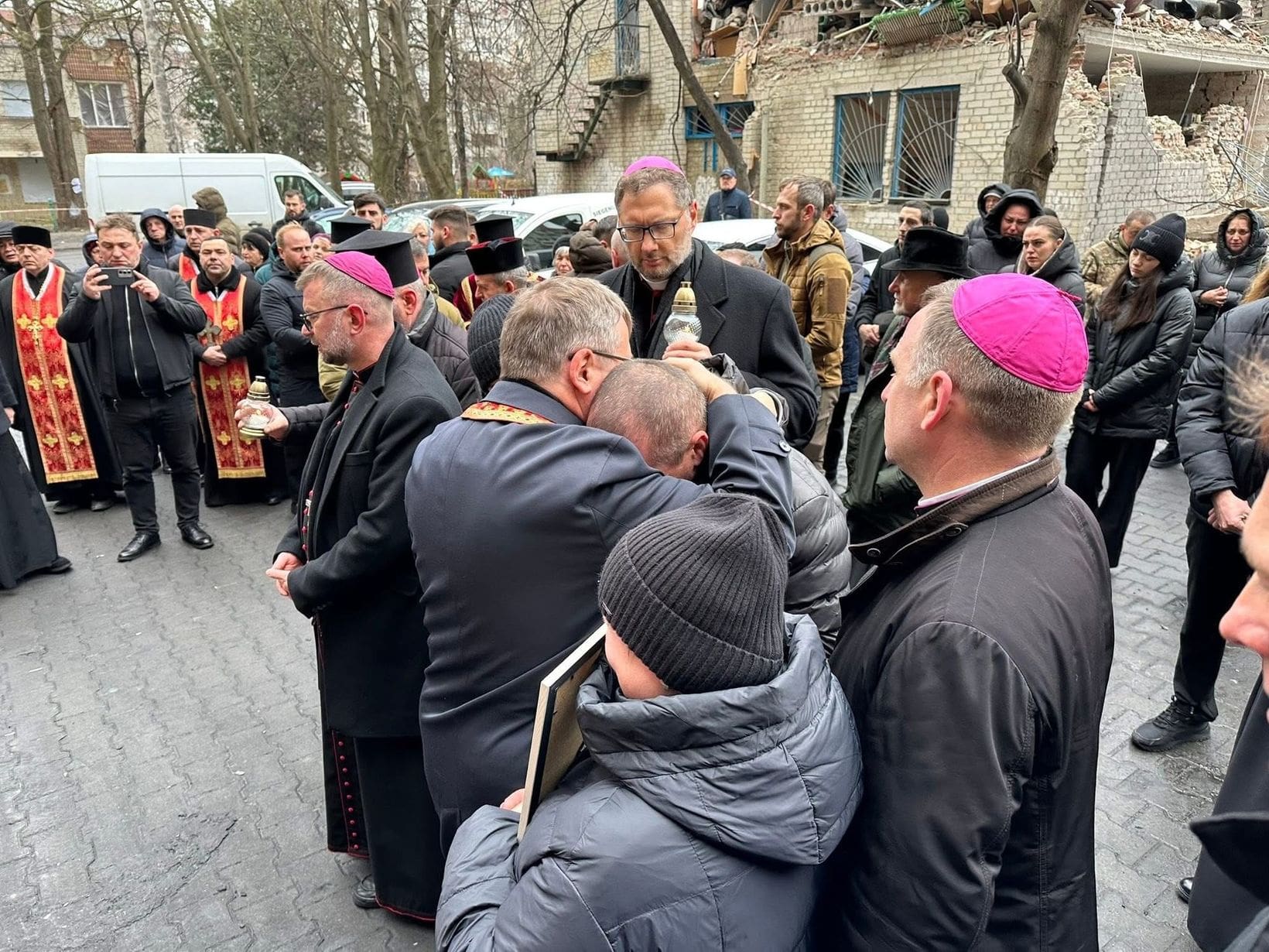 «Нехай цей розділений біль хоч трошки облегшить ваші страждання. Нехай Господь Бог своєю любов’ю дозволить нам усе відбудувати і відновити, а тих, кого вже немає серед нас, хай прийме у свої вічні обійми як люблячий Бог і Отець. І всім загиблим сотворить вічну пам’ять!».