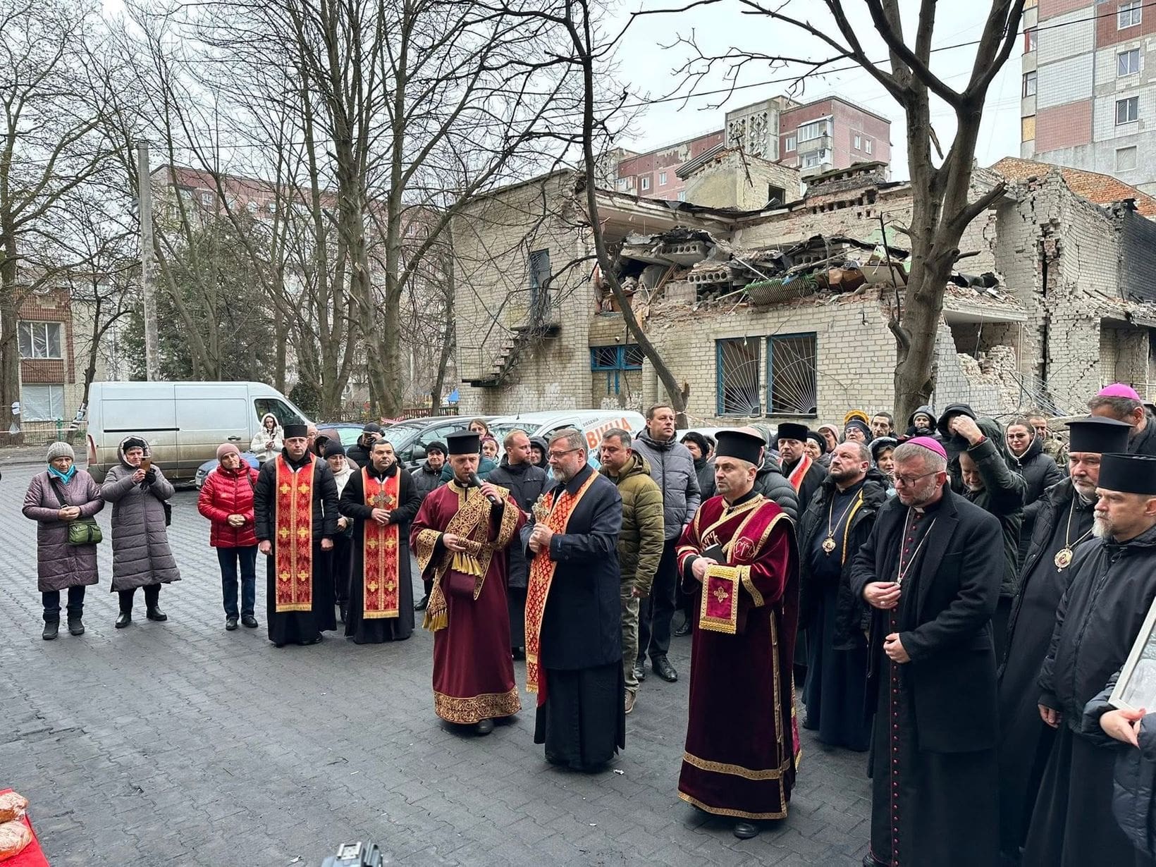 Єпископи УГКЦ і РКЦ помолилися на місцях ракетних ударів у Тернополі.