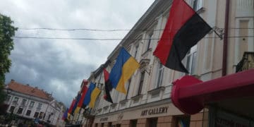 Національними прапорами замайоріли фасади на вулицях Руській, Митрополита Андрія Шептицького, Гетьмана Сагайдачного та інші.