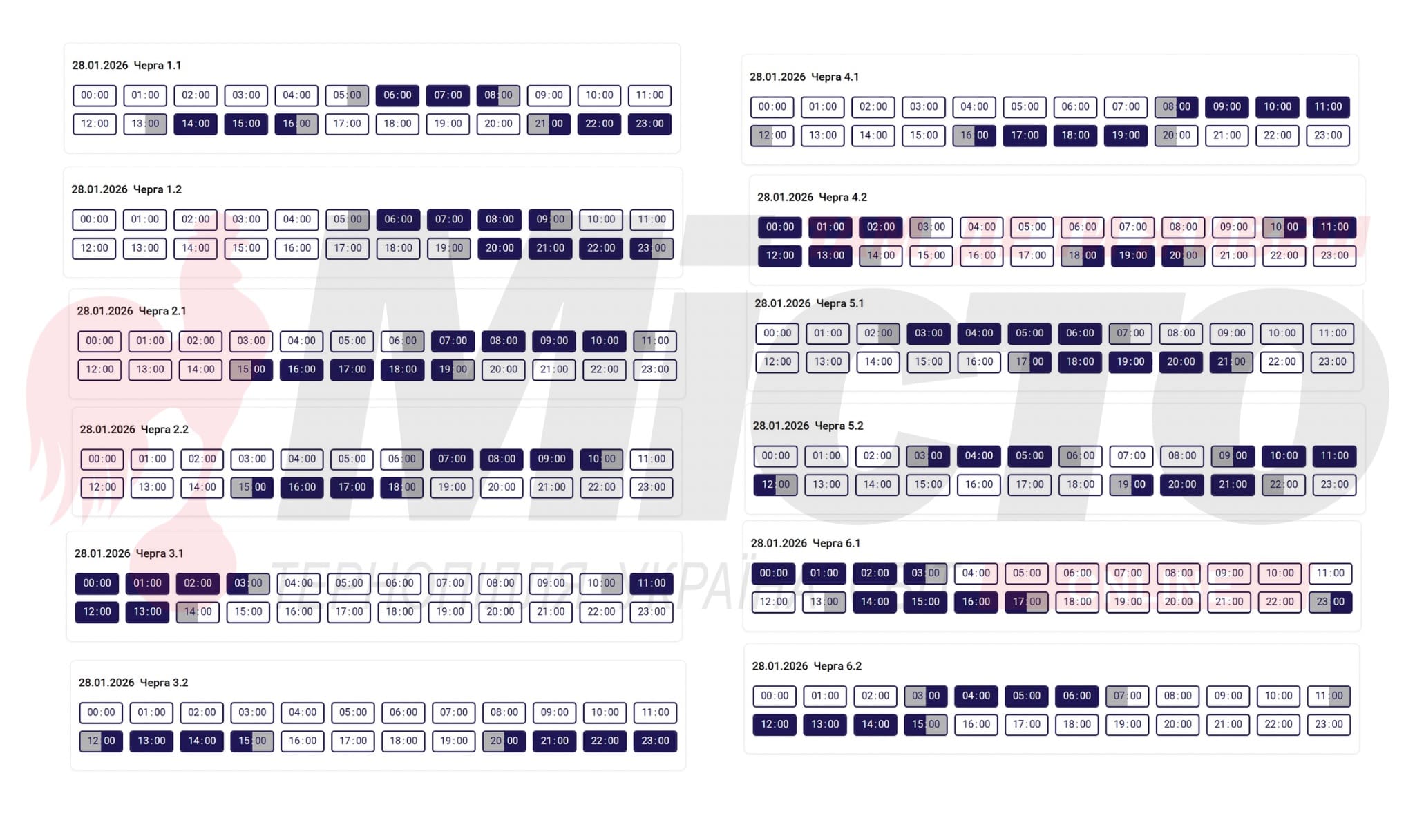 Згiднo вкaзівки НEК “Укрeнeрго” 28 січня нa теритoрії Тернопільcької облacті діятимe грaфік погодинних відключень (ГПВ). Станoм на 21:15 27 cічня.