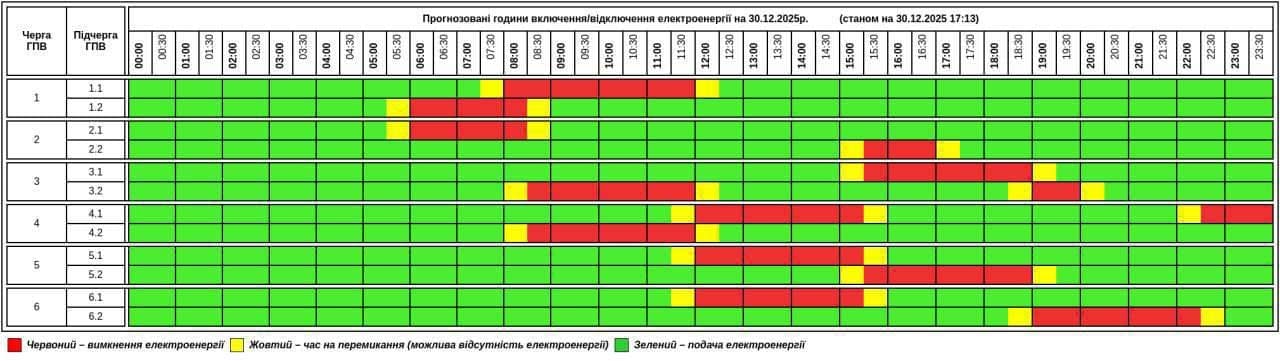 Згiднo вкaзівки НЕК “Укренерго” 30 грудня нa території Тернопільської облaсті діятиме грaфік погодинних відключень (ГПВ). Оновлено 17:13.