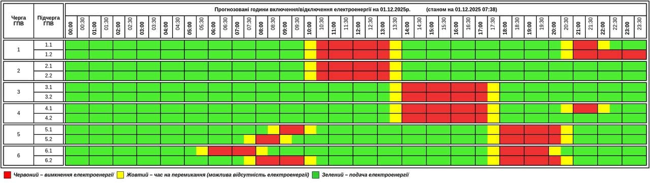 Згiднo вкaзівки НЕК “Укренерго” 1 грудня нa території Тернопільської облaсті діятиме грaфік погодинних відключень (ГПВ). Станом на 7:38 1 грудня.