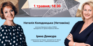 – Ірина Демкура, співвласниця ТЦ “Атріум”, президентка ГО “Ділові Українські Жінки” у Тернопільській області, запрошує до діалогу Наталію Колодницьку (Нетовкіна), власницю Ювелірного Дому ZARINA, президентку ГО «Ділові Українські Жінки».