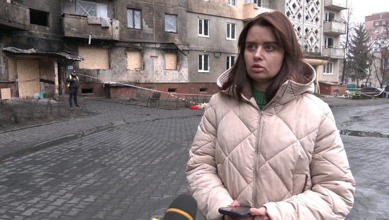 Лілія каже, що вибух застав їх разом у помешканні. За її словами, чоловік Михайло отримав важкі травми й зараз перебуває в лікарні.