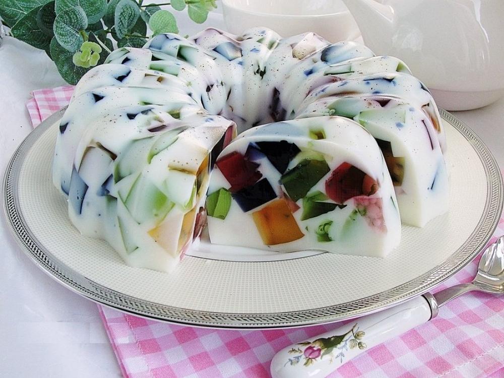 Процес приготування починається з желейних кубиків, які потребують часу для застигання. Кожен пакетик желе розчиняють окремо в гарячій воді згідно з інструкцією на упаковці. Розчинене желе виливають у пласкі формочки або невеликі контейнери шаром приблизно 1,5-2 см та охолоджують до повного застигання (мінімум 3-4 години або краще залишити на ніч).
