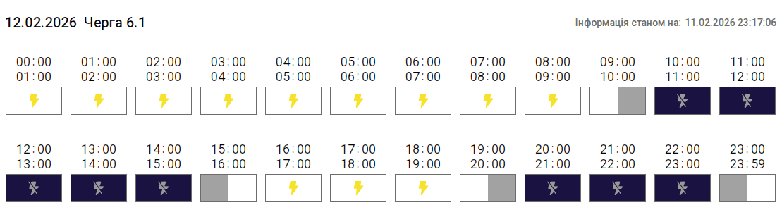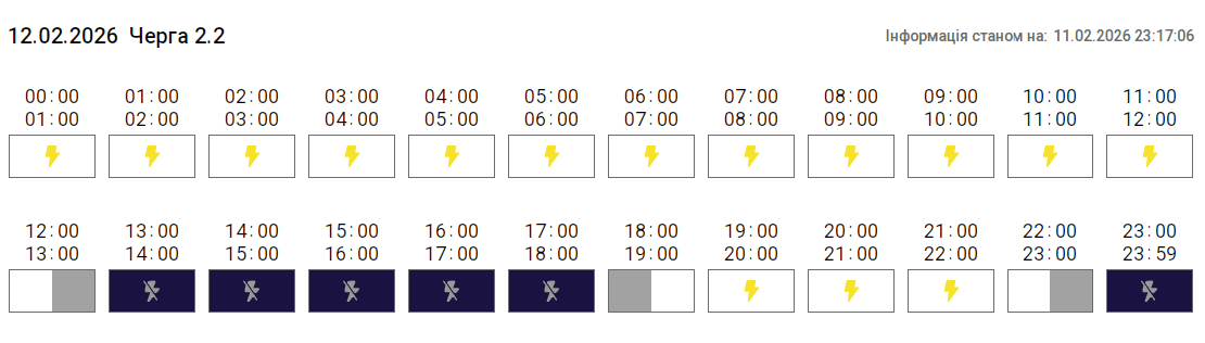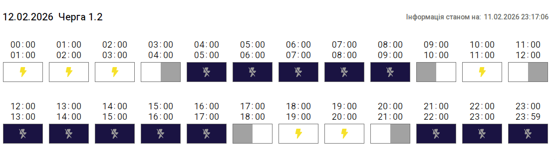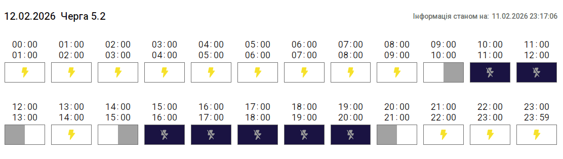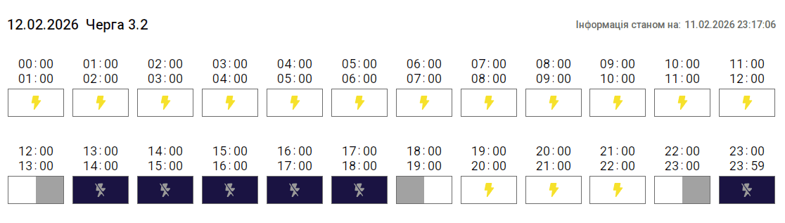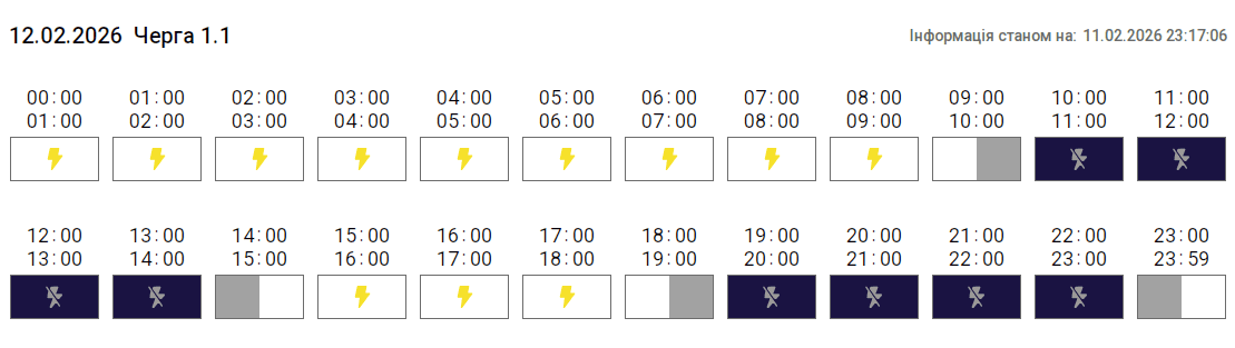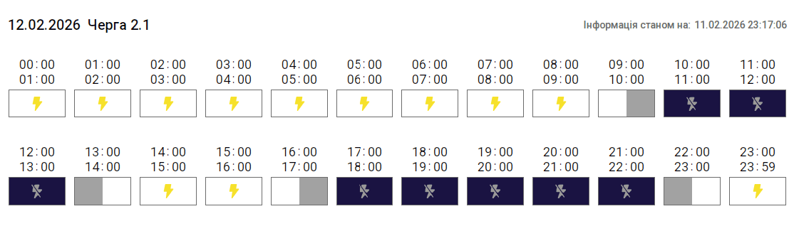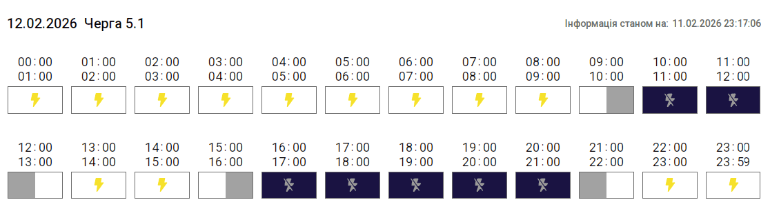 Згідно з вказівкою «Укренерго», 12 лютого 2026 року на території Тернопільської області діятиме Графік погодинних відключень (ГПВ). Про це повідомили у «Тернопільобленерго».