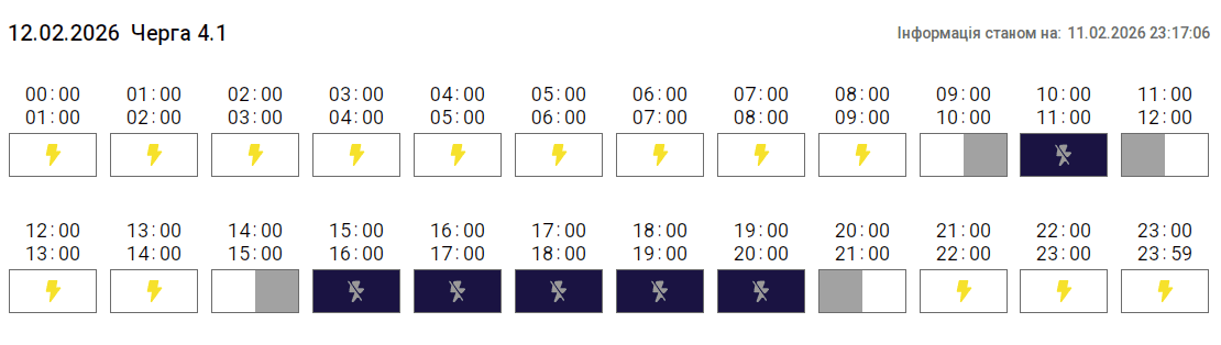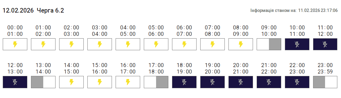 Графік протягом доби може змінюватися. Просимо слідкувати за оновленнями на нашому офіційному сайті. Дякуємо споживачам за розуміння ситуації та раціональне використання електроенергії, – йдеться в повідомленні.