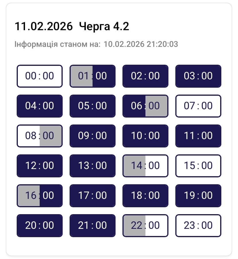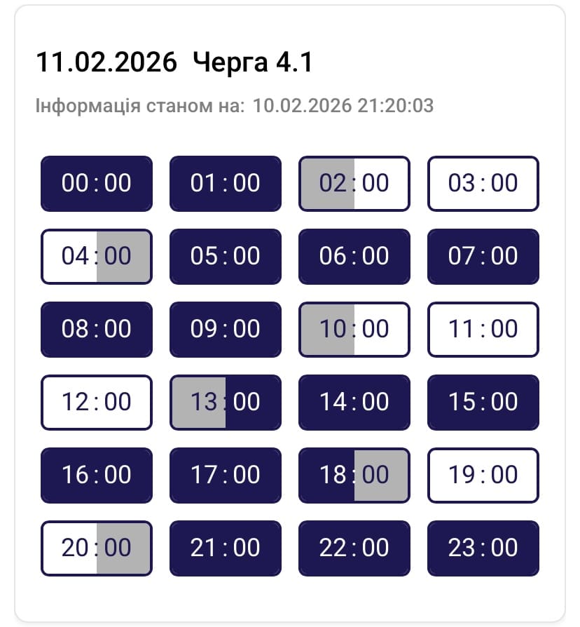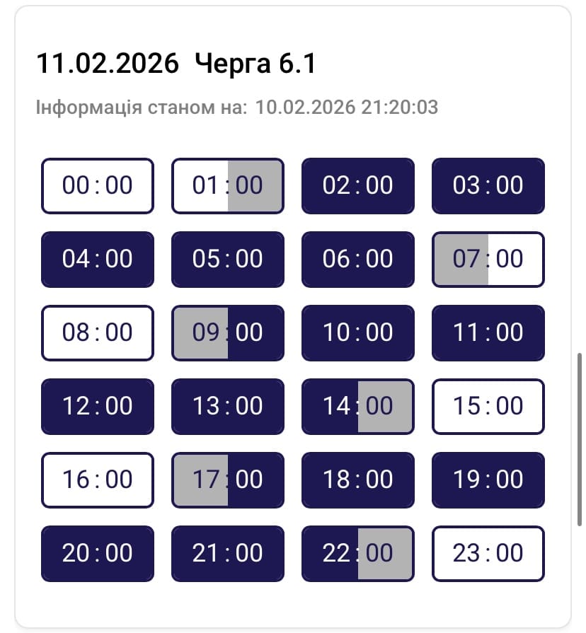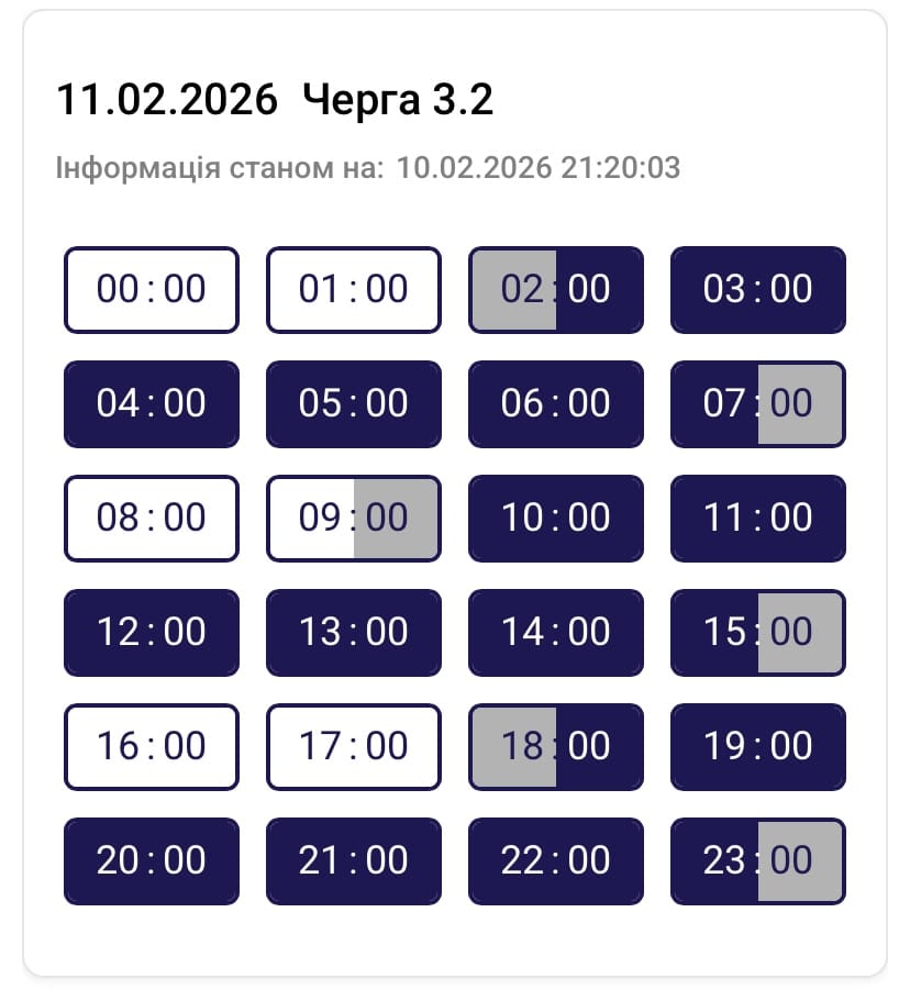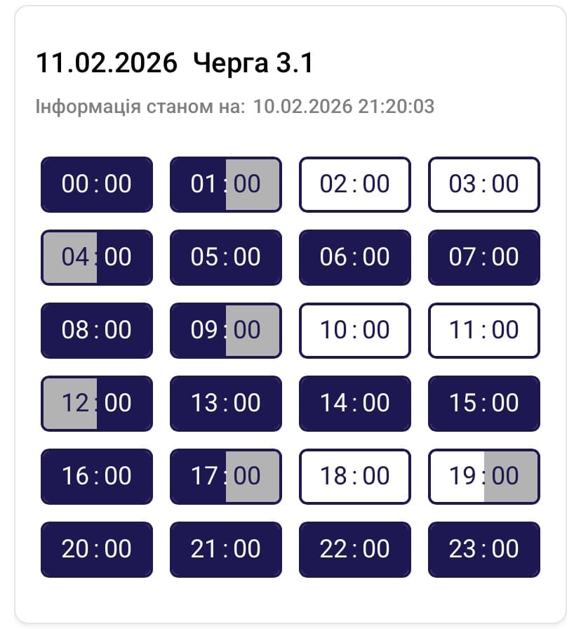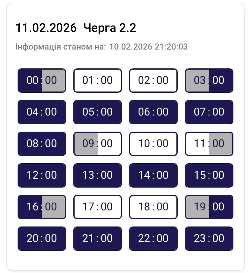 Згідно з вказівкою «Укренерго», 11 лютoго 2026 року на території Тернопільської області діятиме Графік погодинних відключень (ГПВ). Про це повідомили у «Тернопільобленерго».