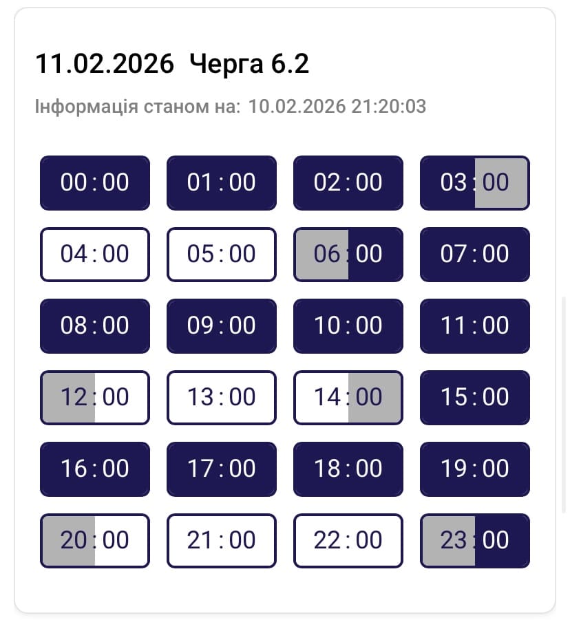 Графік протягом доби може змінюватися. Просимо слідкувати за оновленнями на нашому офіційному сайті. Дякуємо споживачам за розуміння ситуації та раціональне використання електроенергії, – йдеться в повідомленні.