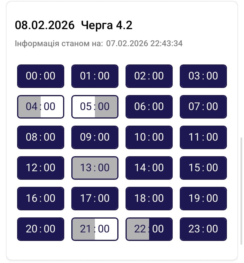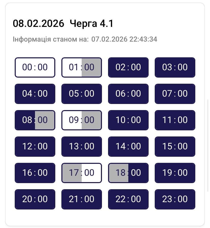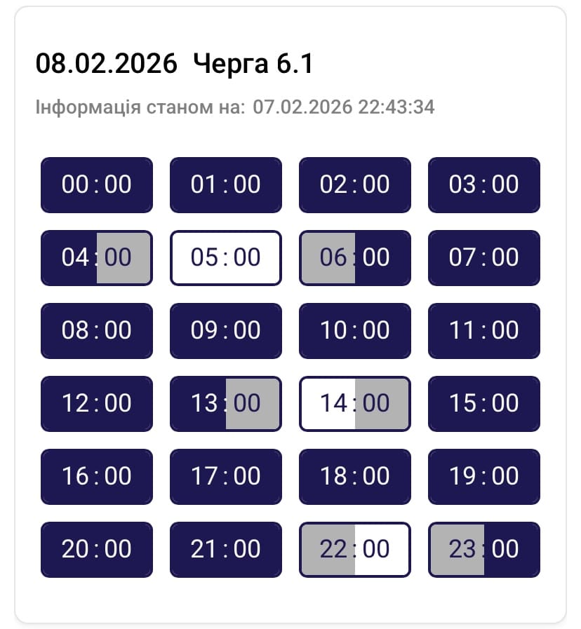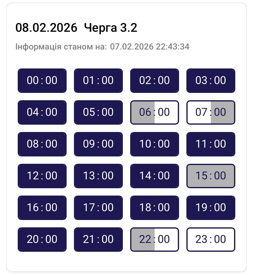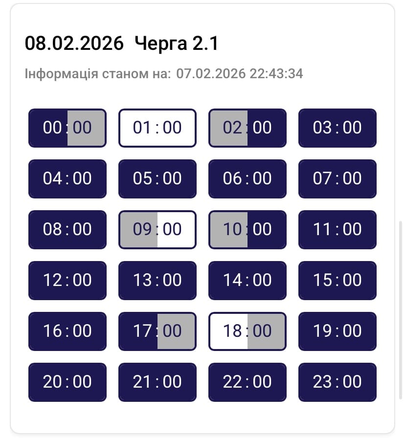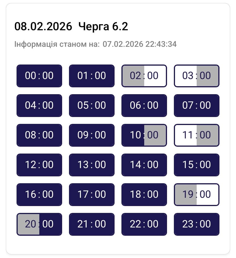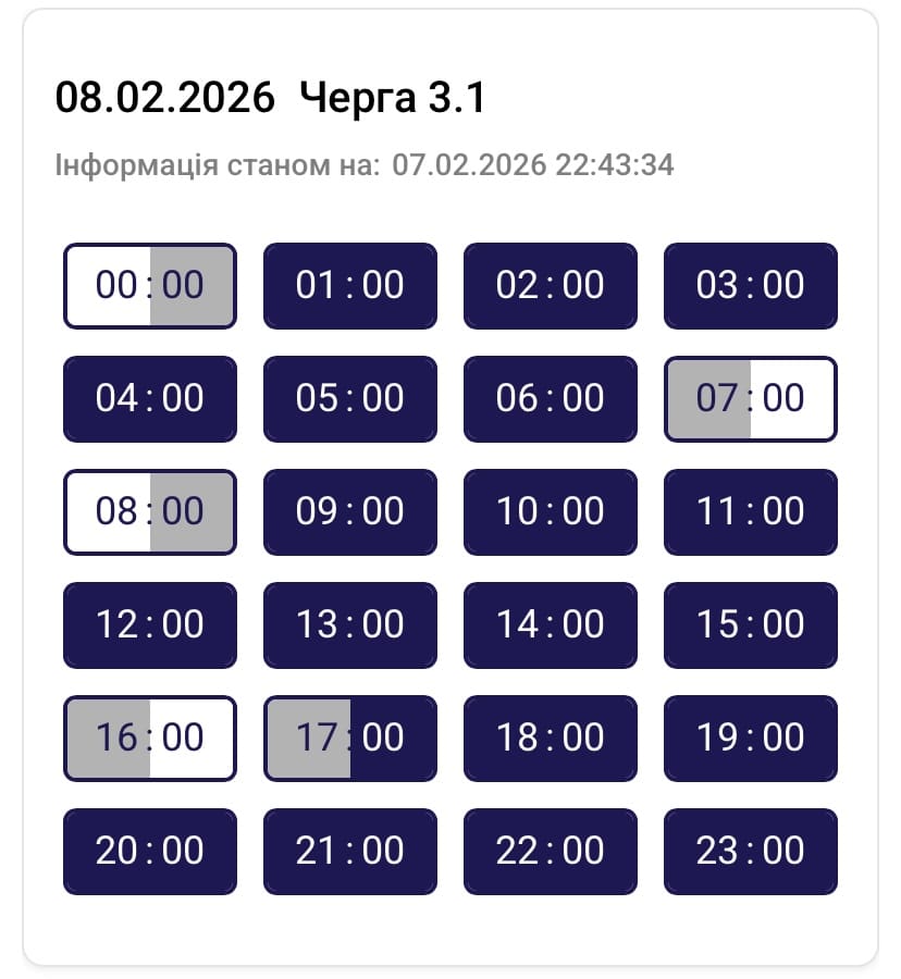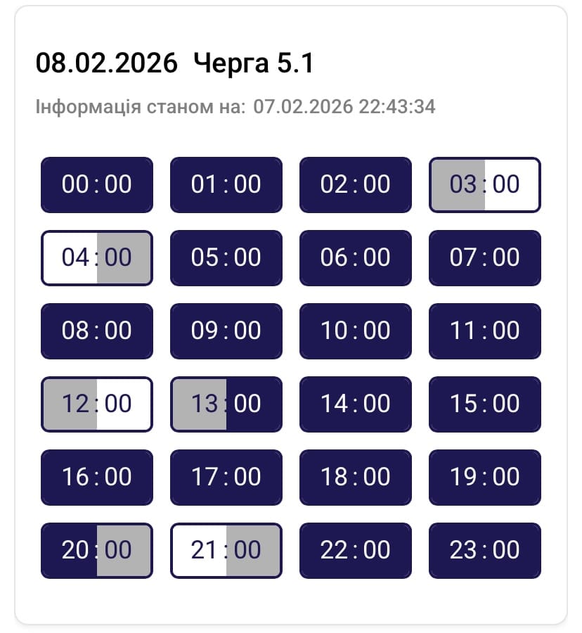 Графік протягом доби може змінюватися. Просимо слідкувати за оновленнями на нашому офіційному сайті. Дякуємо споживачам за розуміння ситуації та раціональне використання електроенергії, – йдеться в повідомленні.