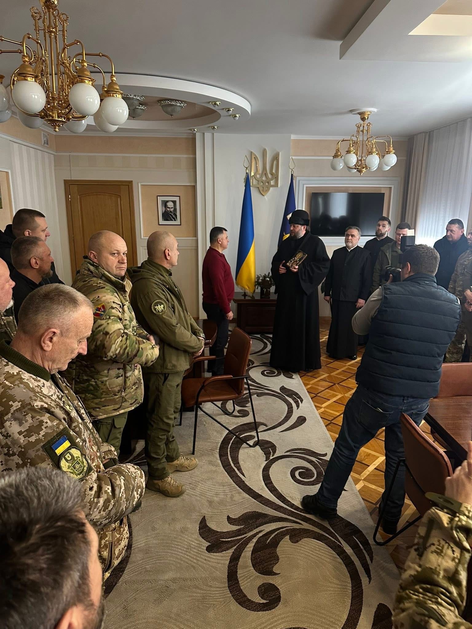 Архієпископ Тихон із духовенством заколядували в кабінеті голови ОВА.