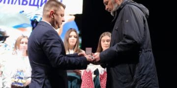 – Маю за честь стояти на цій сцені та вручати відзнаки тим, хто перший став на захист нашої землі, – зазначив Віктор Овчарук. – Церемонія «Доброволець Тернопільщини» – це, найперше, вшанування тих людей, завдяки яким, їхній мужності, відданості національним інтересам і щирому патріотизму вдалося зупинити російського агресора, дати змогу мобілізувати сили в тилу й озброїти армію.Водночас, це і нагадування нашому суспільству, що війна триває. На превеликий жаль, сьогодні запал суспільства дещо згасає. Якщо на початку російсько-української війни кожна смерть глибоко відлунювала у наших серцях, то зараз все вже не так боляче сприймається. Тільки ті трагічні обставини, які мають місце на східних кордонах України, ми не маємо права перевести у статистику. Переконаний, кожен доброволець, який став на захист держави, повинен бути гідно пошанований. І церемонія «Доброволець Тернопільщини» проводитиметься доти, допоки жоден не залишиться поза увагою. І Тернопільська обласна рада, депутатський корпус будуть допомагати та сприяти проведенню таких церемоній. Бо вони – то частинка великої вдячності усім нашим добровольцям.