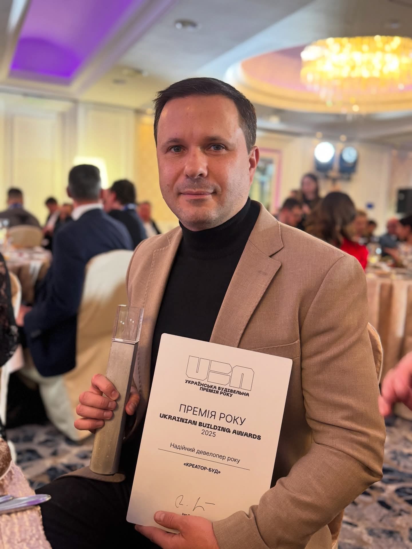 За підсумками 2025 року «Креатор-Буд» отримав дві нагороди у номінаціях «Надійний девелопер» та «Лідер прогресивних рішень у девелопменті».