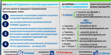 «Такі кредити стали доступними завдяки тому, що обласна державна адміністрація спільно з Німецько-українським фондом розробила відповідний механізм – Порядок використання коштів, передбачених в обласному бюджеті, на часткове відшкодування відсоткових ставок за кредитами банків для суб’єктів малого і середнього підприємництва» – говорить голова Тернопільської облдержадміністрації Степан Барна. (документ доступний для ознайомлення на офіційному веб-сайті Тернопільської ОДА в банері “Підтримка бізнесу” за посиланням: http://www.oda.te.gov.ua/main/ua/publication/content/26830.htm)