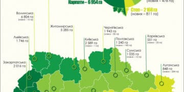 На інфографіці можна детально ознайомитися з відтворенням лісів у кожній області України.