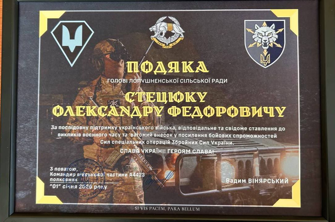 Сільський голова Лопушненської сільської територіальної громади Олександр Стецюк повідомив про зустріч із представником однієї з військових частин Збройних сил України. Під час спілкування громаді передали подяку за постійну підтримку українських захисників.