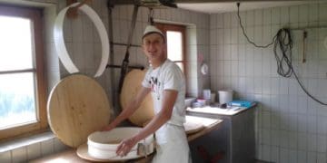 – Австрійська сироварня розташована високо в горах ізольовано від людей, – розповідає Василь. –  Власники корів з цієї околиці приганяють тварин на все літо в гори і доручають їх бізнесменам-сироварам. На фермі нас було тільки двоє. Ми доглядали за коровами та варили сир за швейцарською технологією. У 60-70 літрових чанах  ми  спершу нагрівали молоко, охолоджували, додавали ферменти, бактерії, підігрівали, формували сир… За день переробляли 650 літрів молока. З такої кількості виходить близько 60 кг сиру.