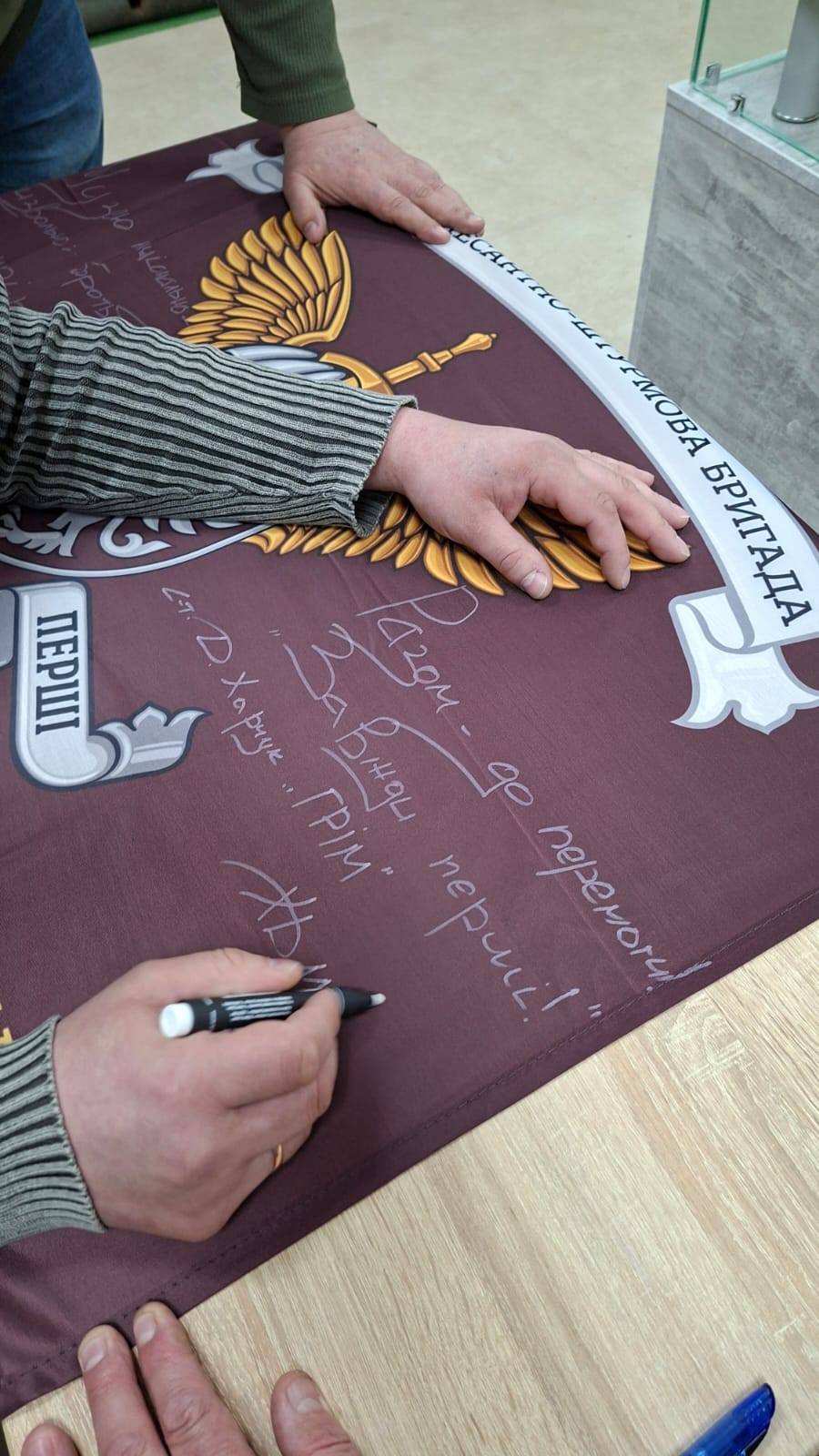Підписання меморандуму ознаменувалося символічним актом передачі реліквії. Дмитро Харчук, який безпосередньо брав участь у бойових діях, передав до музейних фондів прапор 80-ї окремої десантно-штурмової Галицької бригади.