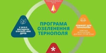 та висадження нових дерев, кущів, газонів та квітників. Загальна площа зелених зон становитиме 40 % від усієї території Тернополя.