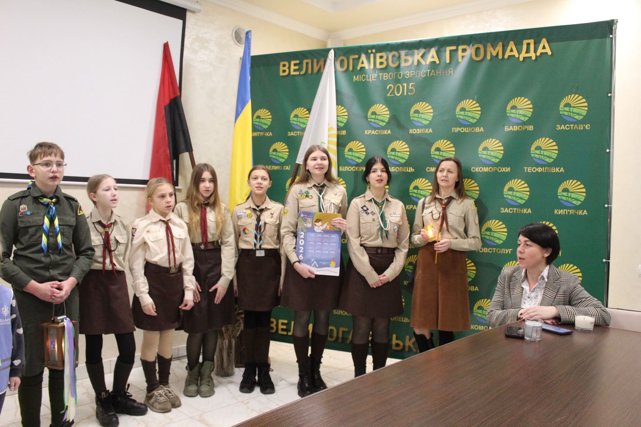 Того ж дня пластуни також урочисто передали традиційний Вифлеємський вогонь миру до Великогаївської сільської ради. Вогонь, який щороку напередодні Різдва мандрує десятками країн, сіл і міст, продовжить свою місію у населених пунктах громади.
