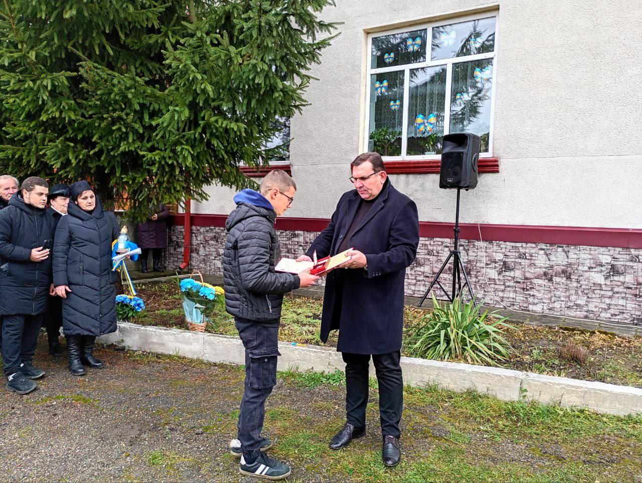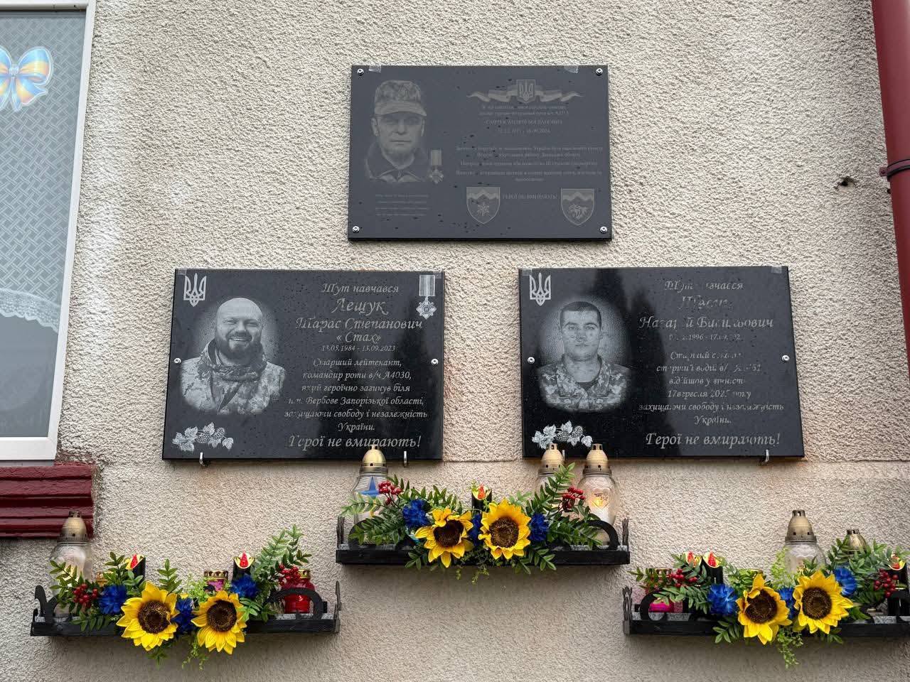 У Надрічнянській гімназії 23 листопада 2025 року відкрили меморіальні дошки трьом землякам – Тарасу Лещуку, Андрію Савчуку та Назарію Швецю. Подія поєднала офіційні вшанування та особисті промови рідних.