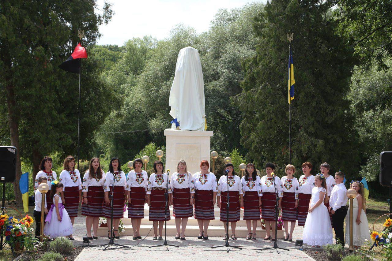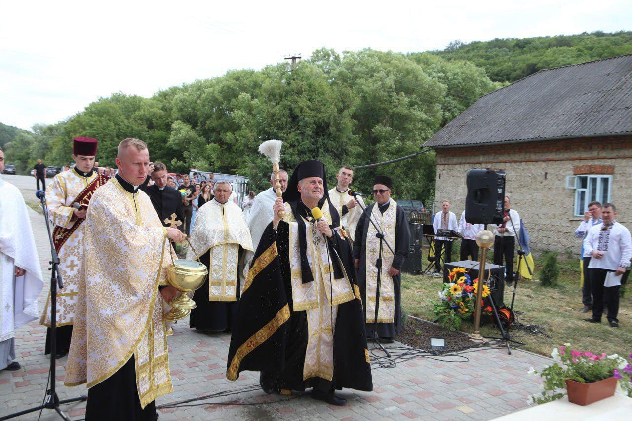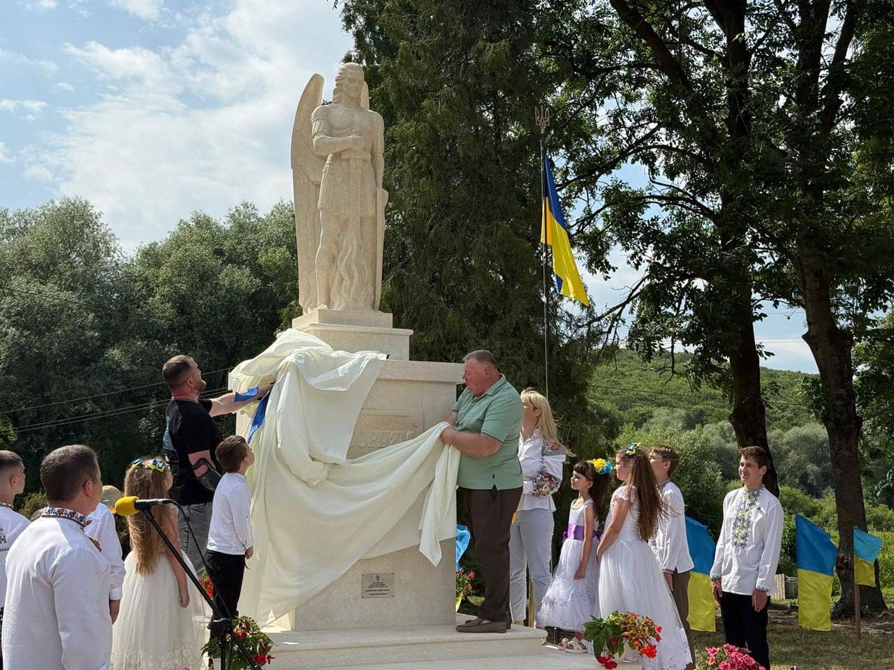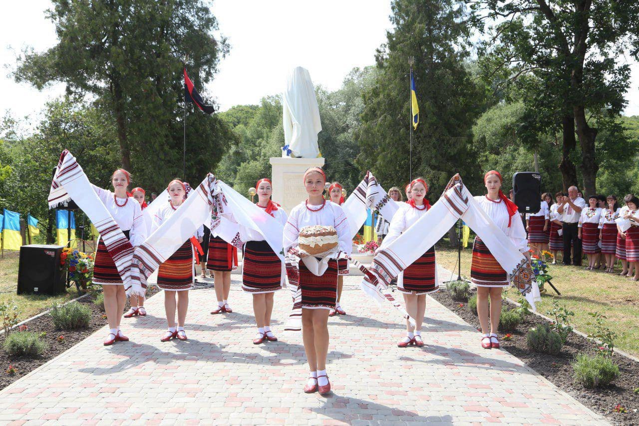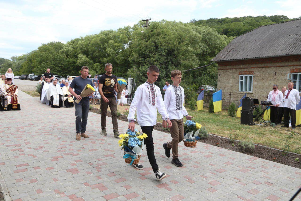 Скульптуру освятив єпарх Бучацький УГКЦ владика Дмитро Григорак у співслужінні духовенства. На урочистості зібралися мешканці громади, військові, родини полеглих воїнів, представники влади та молодь.