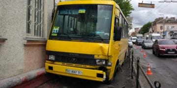 На центральній вулиці Тернополя маршрутка вилетіла на тротуар