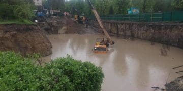 З початком весняних дощів почала зсовуватися земля біля величезного котловану на місці скандальної забудови на Миру.