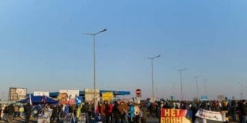 Активісти кажуть, що довжина черги з вантажівок становить близько 50 кілометрів.