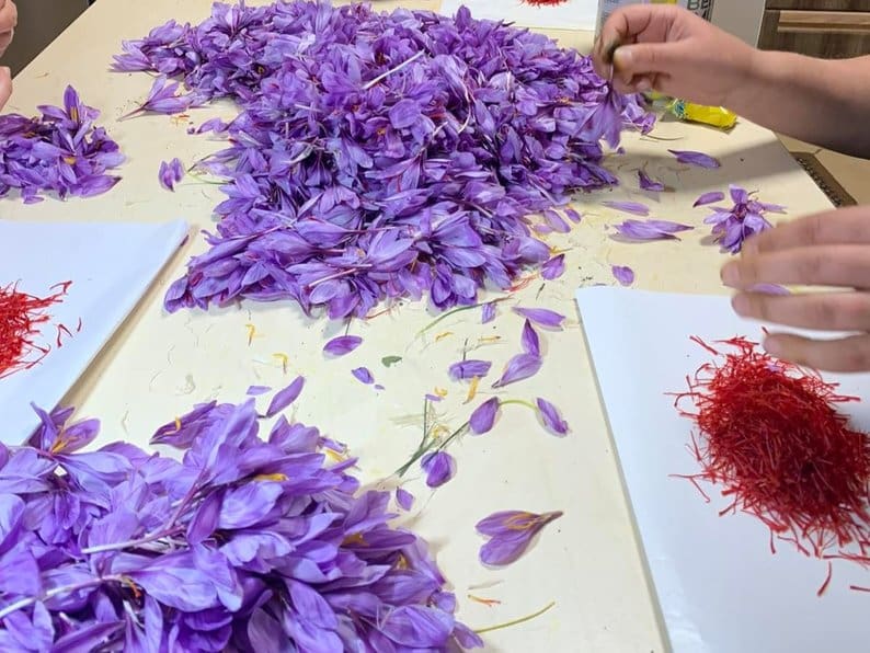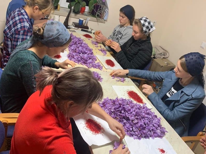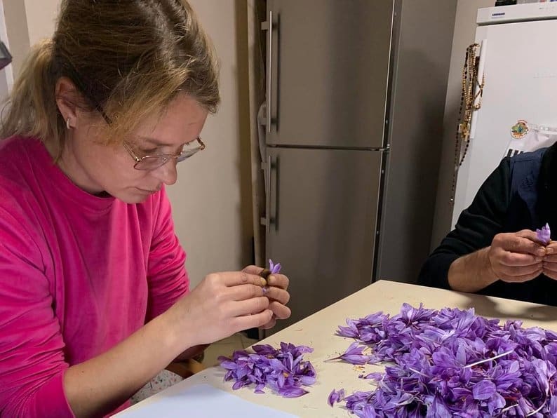 «Вусики висмикують, а тоді засушують. З 250 квіток виходить орієнтовно грам готової спеції. Минулого року ми цілу ніч працювали».